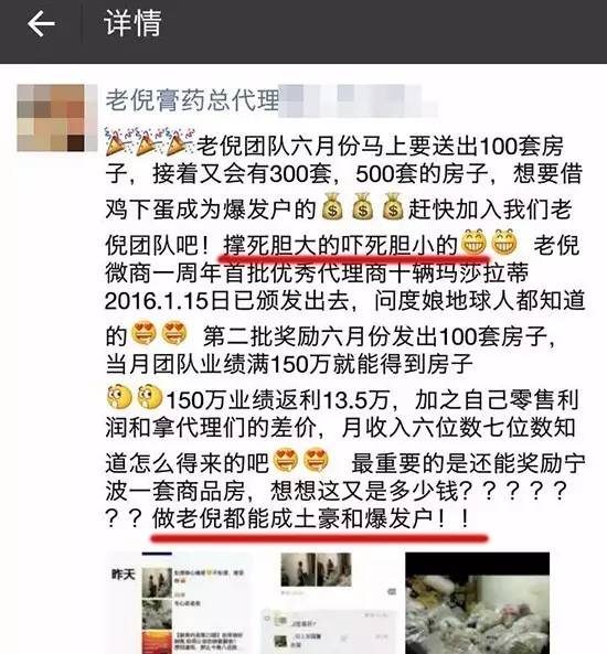 800萬(wàn)豪購(gòu)11臺(tái)瑪莎拉蒂發(fā)年終獎(jiǎng)、法拉利超跑車隊(duì)進(jìn)川藏,為優(yōu)秀代理送房100套,當(dāng)眾發(fā)厚厚的幾捆現(xiàn)鈔,并錄成小視頻擴(kuò)散……通過(guò)微信售賣“祖?zhèn)鳌备嗨幍南笊侥呤咸冕t(yī)學(xué)科技有限公司,每個(gè)關(guān)鍵詞都足夠“吸睛”。