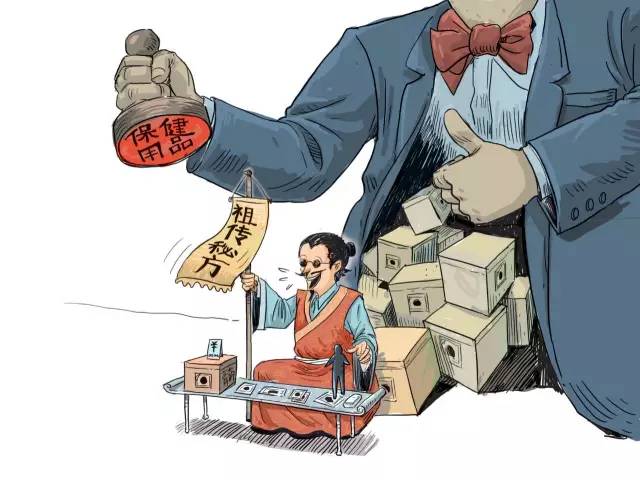 自稱祖?zhèn)髅胤降母鞣N膏藥,由同一家企業(yè)批量制造,生產(chǎn)許可則由這家企業(yè)擔(dān)任會(huì)長(zhǎng)的商會(huì)自己蓋章認(rèn)可。(農(nóng)建▏插畫(huà))
