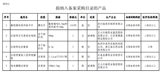 現(xiàn)將評審結果和按相應規(guī)則(已有進口產品中標或已納入備案采購目錄的藥品,現(xiàn)申請備案采購的國產品直接進入議價程序)擬納入備案采購目錄的產品予以公示(具體詳見附件)。