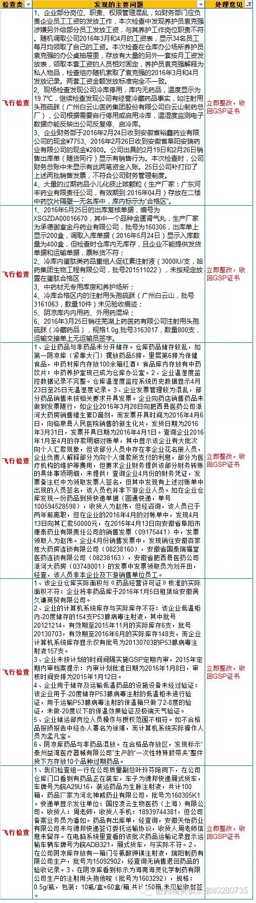 我們比對(duì)公告,統(tǒng)計(jì)匯總分析,主要是因?yàn)橄率霭l(fā)現(xiàn)的問(wèn)題導(dǎo)致涉藥單位被要求整改與立案查處。因此我們也可以清楚的看到那些問(wèn)題需要整改,那些問(wèn)題被立案,甚至收回GSP證。