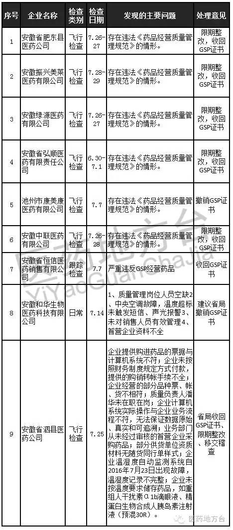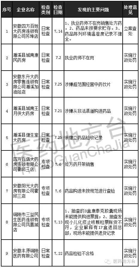 8月17日,安徽省藥監(jiān)局局藥化流通監(jiān)管處發(fā)布《2016年7月藥品流通監(jiān)督檢查信息》,通報省局、17個市(縣)局對藥品流通企業(yè)的檢查情況,檢查范圍包括日常檢查、飛行檢查、專項檢查、跟蹤檢查、認證檢查、專項整治等。