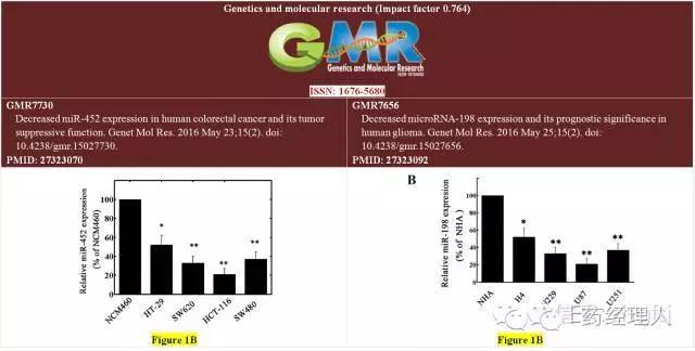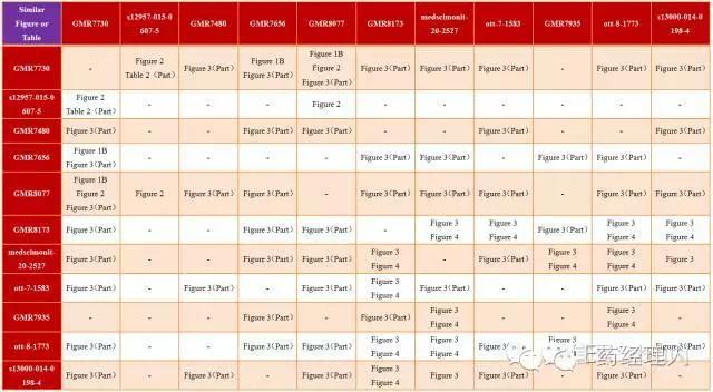 同時,他們也發(fā)現(xiàn)了這里面最嚴(yán)重的相互圖表抄襲是分別發(fā)表于下面四個SCI雜(GMR,Medical Science Monitor,OncoTargets and Therapy,Diagnostic Pathology)的5篇文章。這說明這些雜志均是有問題的。