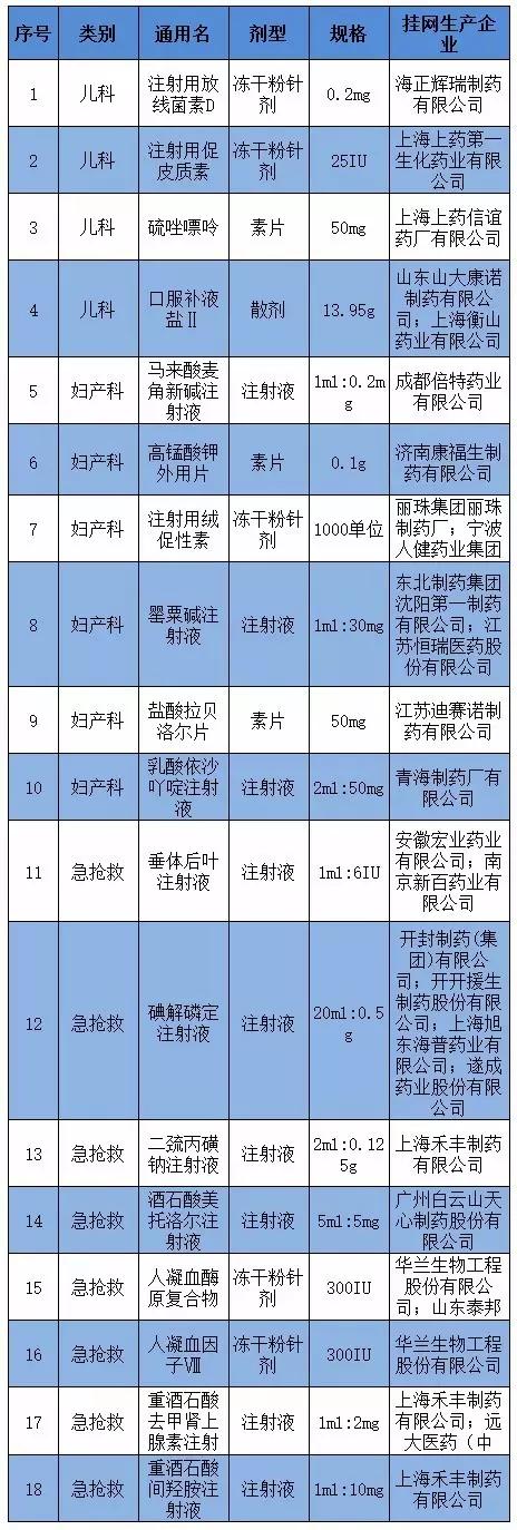 此次共計(jì)公布了18個(gè)短缺藥品,分別是兒科、婦產(chǎn)科和及搶救品種(如下圖)