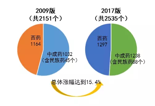 2017 VS 2009:西藥凈增133個(gè),中成藥凈增163個(gè)