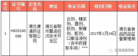 湖北省收回藥品GMP證書公告(2017年第4號)