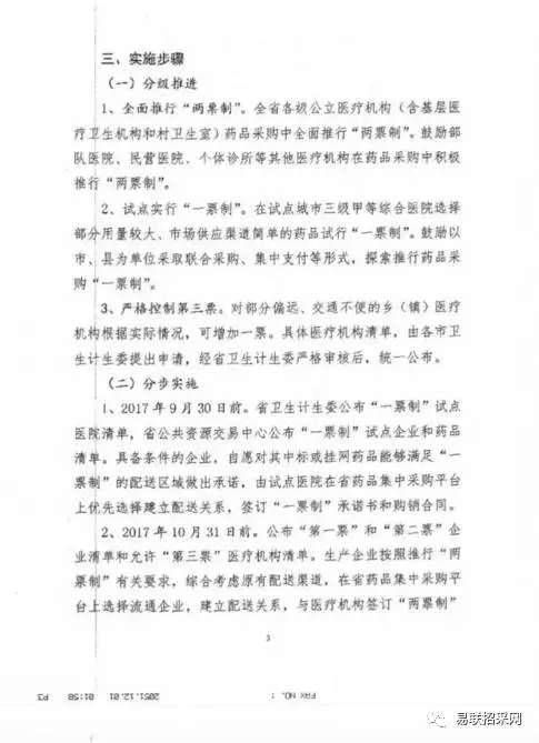 (2)執(zhí)行時間,關(guān)于醫(yī)用耗材采購工作將藥品采購“兩票制”試行情況,擇期參照執(zhí)行。