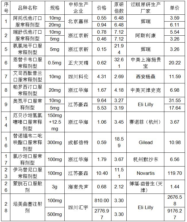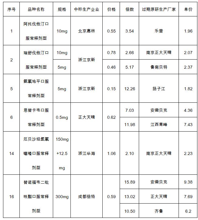 綜合近期天津、遼寧公布的梯度降價數(shù)據(jù),共13個原研藥品和“4+7”中標的產(chǎn)品在2倍以上。