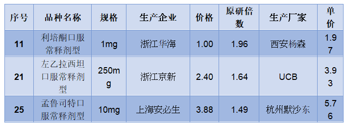 但是仍有4個過期原研產(chǎn)品的價格在中選價格和中選價格2倍以內(nèi)(含2倍)的,這意味著這4個過期原研產(chǎn)品將以仿制藥中選價格為支付標準。這些產(chǎn)品的特征是通過一致性評價的產(chǎn)品生產(chǎn)廠家數(shù)較少,因此可以與過期原研藥價格相近的價格中標。