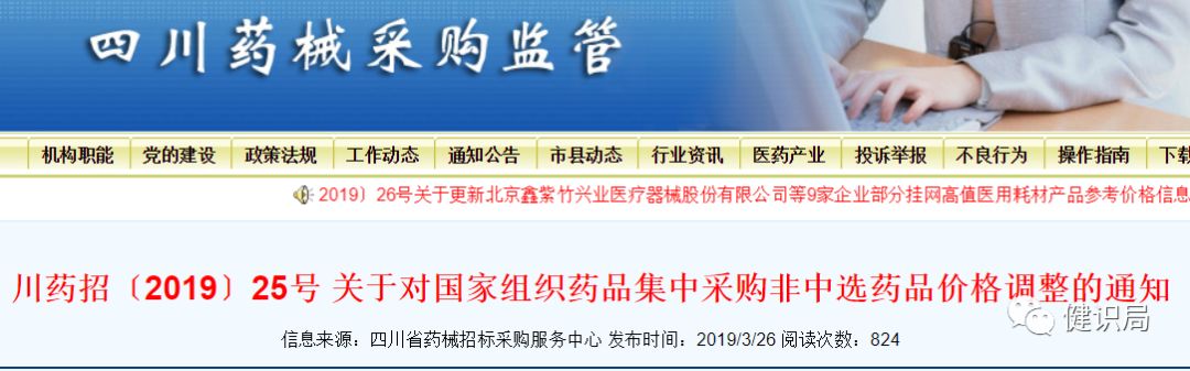 近日(3月26日)四川省藥械招標(biāo)采購服務(wù)中心發(fā)布通知稱,按照相關(guān)規(guī)定,對截至2019年3月20日24點(diǎn)主動提交降價(jià)申請的114個非中選藥品在相應(yīng)采購專區(qū)內(nèi)的價(jià)格信息進(jìn)行調(diào)整。(翻至文末,查看主動申請降價(jià)的114個非中選藥品詳情)